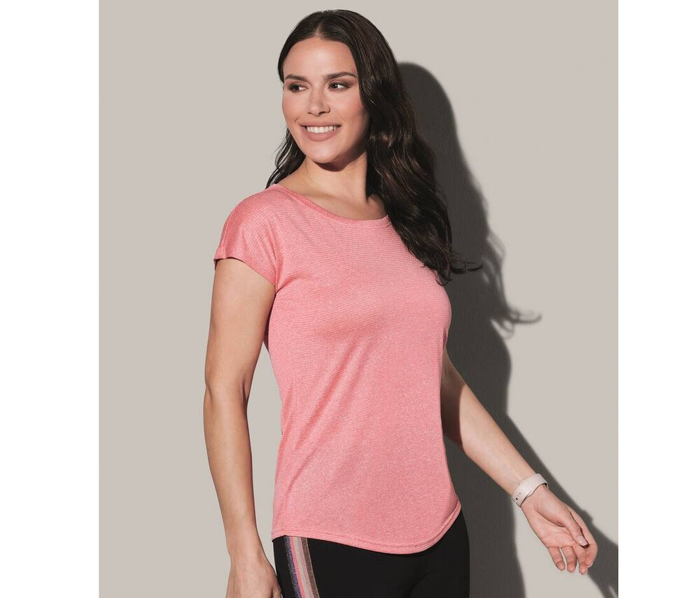 Umweltfreundliche Herstellung aus recycelten Materialien. Modisch melierter Look, hergestellt aus etwa 4 Flaschen. Besonders schmeichelnde Passform für Frauen mit überschnittenen Ärmeln und abgerundetem Saum. ACTIVE-DRY°: funktionelles, schnell trocknendes Material mit ausgezeichneter Feuchtigkeitsregulierung und Atmungsaktivität. Schmaler Kragen aus demselben Material. Nackenband. Seitliche Nähte. Größenetikett in gewebter Qualität im Nacken. Abreiß-Pflegeetikett in der Seitennaht.